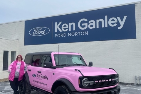 Pink + Bronco = PRONCO! Meet my Pronco! 💕🐎 I’m overjoyed! Thank you to everyone at Ken Ganley Ford Norton! I can’t even! Let’s GOAT mode 2024!!